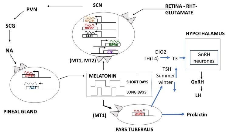 Melatonin is a pretty interesting neurohormone. Secreted by the pineal gland in response to changes in light, melatonin acts on MT1 receptors found largely on the pars tuberalis to induce other hormonal changes and blah blah blah the hormone makes you sleepy.