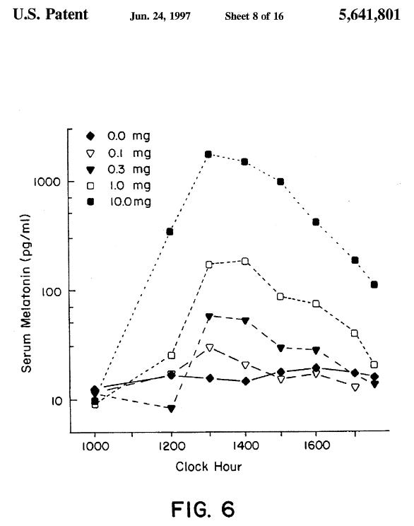 MIT filed for a patent of “a single dose of melatonin of less than 1mg” in 1995, which the U.S. government then awarded in 1997. They specified the method of administration and the dosage because according to U.S. patent law, you can’t patent natural substances like normal pharmaceuticals, you can only patent the method of using them.